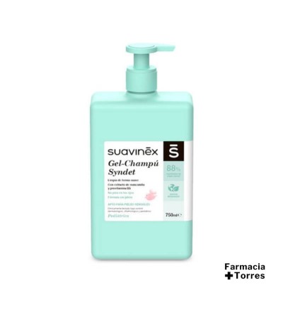 El gel-champú de Suavinex limpia de manera suave la piel y el cabello del bebé gracias a su fórmula syndet (sin jabón).