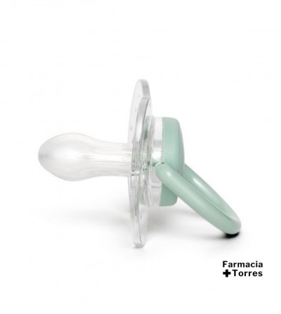 De forma plana y simétrica, queda siempre correctamente colocada en la boquita del bebé, ejerciendo la mínima presión sobre el paladar.