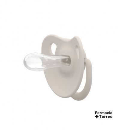 De forma plana y simétrica, queda siempre correctamente colocada en la boquita del bebé, ejerciendo la mínima presión sobre el paladar.