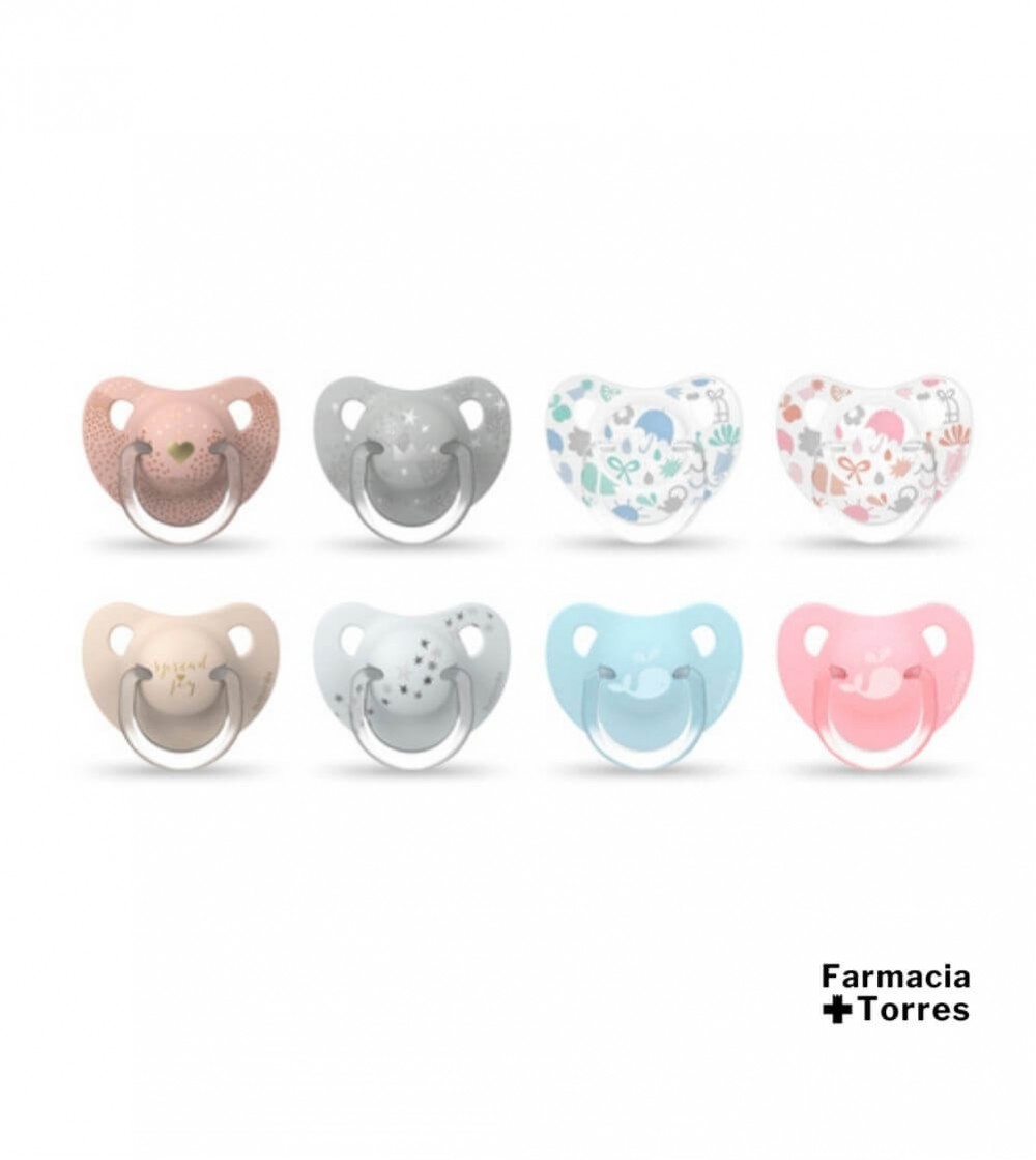 Pack de 2 chupetes para bebés a partir de 18 meses, con tetinas anatómicas de silicona.